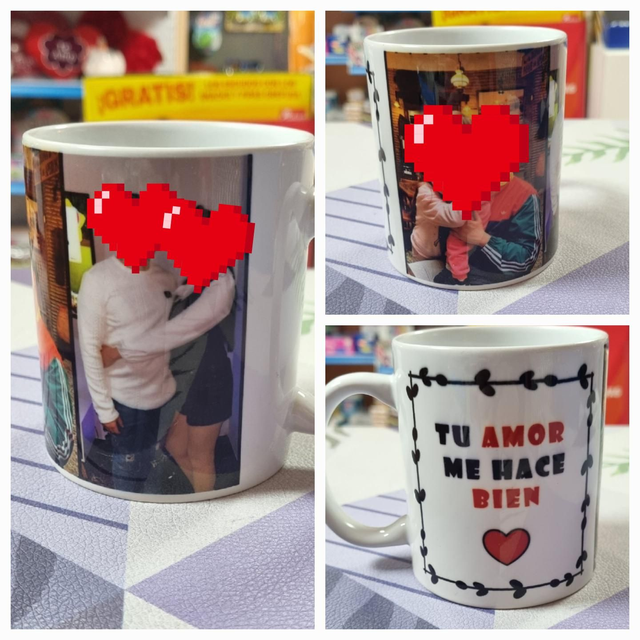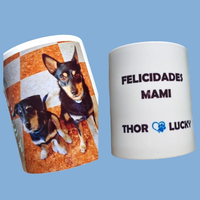 Taza personalizada con una foto o frase en cada lado de la taza.